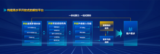 后續平臺將持續開(kāi)發(fā)新的功能,并對更多的解紛機構、解紛資源以及解紛信息化建設的最新成果開(kāi)放對接與嵌入,以實(shí)現更加廣泛的一站式解紛聚合效應。