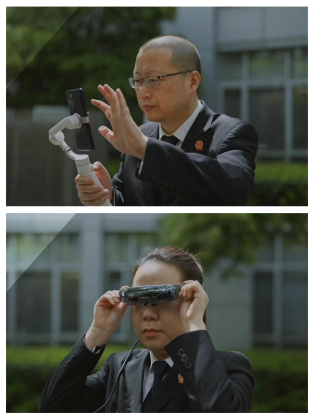 區別于傳統的線(xiàn)下單兵執行,智能VR眼鏡拍攝和記錄執行情況更具有隱蔽性,在全程拍攝取證時(shí),可有效緩解群眾的抵觸和不安情緒,同時(shí)將視頻實(shí)時(shí)同步至執行指揮中心,并歸入卷宗。手機云臺則用于解決手持拍攝的不穩定問(wèn)題,尤其適用于戶(hù)外移動(dòng)場(chǎng)景的拍攝記錄。執行人員外出執行任務(wù)時(shí)以佩戴的方式實(shí)時(shí)記錄執行的全過(guò)程,通過(guò)網(wǎng)絡(luò )即時(shí)連線(xiàn)執行指揮中心,以第一視角向執行指揮中心展現查訪(fǎng)當事人的全過(guò)程,解放雙手,做到線(xiàn)下記錄、線(xiàn)上拍攝、領(lǐng)導監督指揮等環(huán)節同時(shí)進(jìn)行,確保案件記錄清晰完整,同時(shí)解放雙手,極大便利了執行工作。